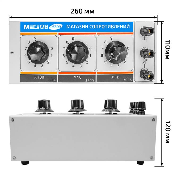 МЕГЕОН 05600 построен на основе проволочных резисторов с минимальной индуктивностью благодаря специальной технологии намотки, что значительно уменьшает погрешность измерений и делает прибор пригодным для использования в высокочастотных цепях. Металлический корпус обеспечивает надёжную защиту от механических повреждений, а наличие клеммы заземления повышает безопасность эксплуатации. Компактные размеры и удобный интерфейс управления делают использование прибора максимально простым и комфортным.